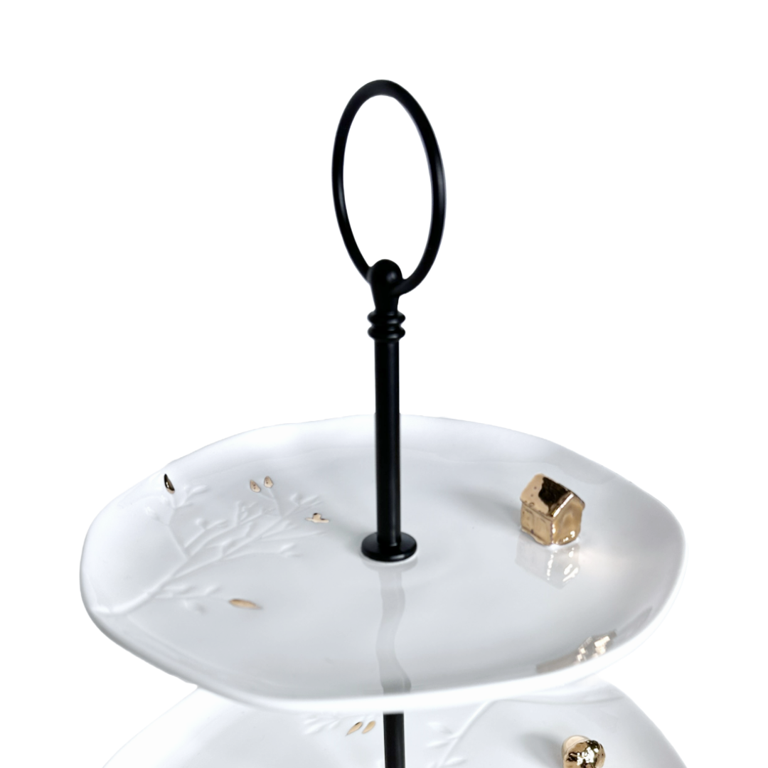 Add a sprinkle of magic to your gatherings with this 2-tier dessert tray featuring enchanted gold woodland animals and delicate etched flowers. Its playful design not only showcases your treats beautifully but also brings a whimsical charm to any table. Perfect for serving sweets or snacks with a touch of fairy-tale fun!